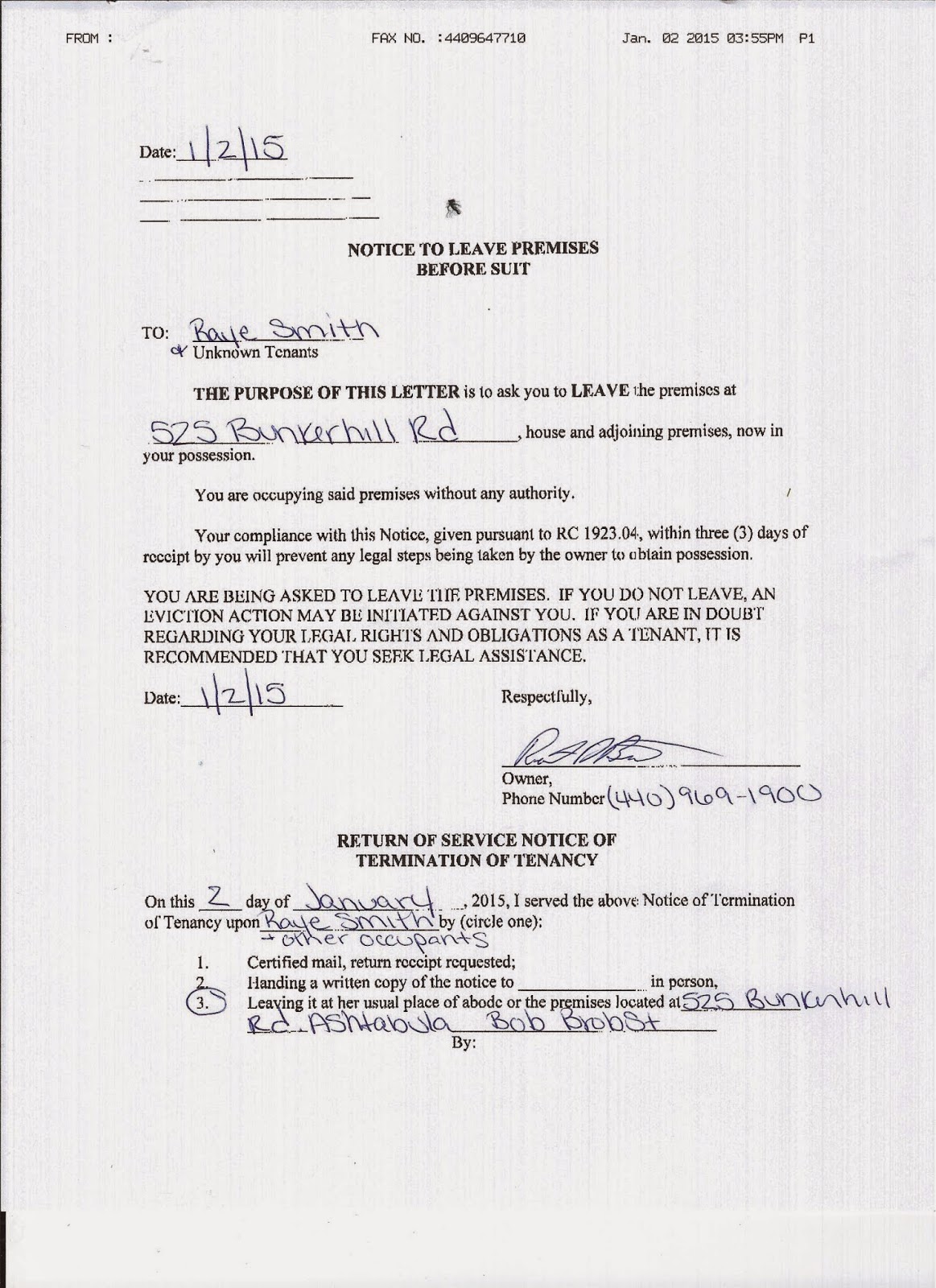 Exhibit 17 - Brobst - NOTICE TO LEAVE THE PREMISES BEFORE SUIT